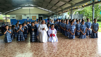 La Escuela la Anunciación antes conocida como “Centro Educativo Kínder la Anunciación” inició sus labores académicas el 20 de abril de 1976 con un buen número de población infantil de Educación Pre kínder y Kínder, bajo la dirección de la Hna. Elizabeth Cecilia Carranza, quien fue asignada por la Congregación de las Hnas. de la Anunciación para prestar sus servicios en este país. El Ministro de Educación Gustavo García de Paredes concede la aprobación legal el día 06 de abril de 1979 bajo el resuelto No 536 es registrado con el nombre “Jardín de Infancia la Anunciación”. El Jardín de Infancia, nace en respuesta a un alto porcentaje de niños de edad inicial (Preescolar) que circundan esta zona y por diferentes motivos: trabajo de sus padres, madres cabeza de hogar, situación de pobreza económica, escasez de recursos, falta de escuelas para niños en estas primeras edades; situación que llevó a las Hermanitas a tomar la iniciativa de crear el Kínder La Anunciación, para impulsar el carisma propio de la Congregación y como respuesta a uno de sus fines la Educación de la Niñez y la Juventud, etapas importantes en la vida de cada ser humano. El día 3 de marzo de 2009 bajo la dirección de la Hna. María Norelys Vargas, se da inicio a la primaria, y obtuvo la aprobación de la Educación Básica Primaria el 31 de diciembre de 2010 con el resuelto N°9637, recibe el nombre de Escuela la Anunciación. Actualmente, la Escuela la Anunciación, cuenta con 2 Hermanitas que están a cargo de todo lo administrativo, 8 Maestras desde preescolar a 6to de Primaria y con una matrícula de 86 estudiantes (18 de preescolar y 68 de primaria).