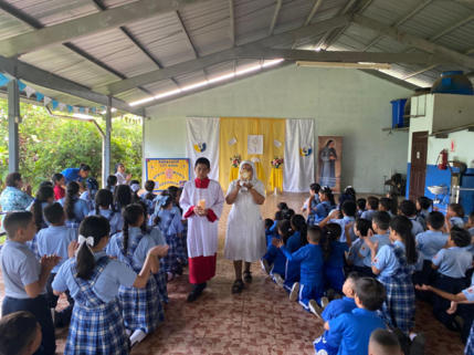 La Escuela la Anunciación antes conocida como “Centro Educativo Kínder la Anunciación” inició sus labores académicas el 20 de abril de 1976 con un buen número de población infantil de Educación Pre kínder y Kínder, bajo la dirección de la Hna. Elizabeth Cecilia Carranza, quien fue asignada por la Congregación de las Hnas. de la Anunciación para prestar sus servicios en este país. El Ministro de Educación Gustavo García de Paredes concede la aprobación legal el día 06 de abril de 1979 bajo el resuelto No 536 es registrado con el nombre “Jardín de Infancia la Anunciación”. El Jardín de Infancia, nace en respuesta a un alto porcentaje de niños de edad inicial (Preescolar) que circundan esta zona y por diferentes motivos: trabajo de sus padres, madres cabeza de hogar, situación de pobreza económica, escasez de recursos, falta de escuelas para niños en estas primeras edades; situación que llevó a las Hermanitas a tomar la iniciativa de crear el Kínder La Anunciación, para impulsar el carisma propio de la Congregación y como respuesta a uno de sus fines la Educación de la Niñez y la Juventud, etapas importantes en la vida de cada ser humano. El día 3 de marzo de 2009 bajo la dirección de la Hna. María Norelys Vargas, se da inicio a la primaria, y obtuvo la aprobación de la Educación Básica Primaria el 31 de diciembre de 2010 con el resuelto N°9637, recibe el nombre de Escuela la Anunciación. Actualmente, la Escuela la Anunciación, cuenta con 2 Hermanitas que están a cargo de todo lo administrativo, 8 Maestras desde preescolar a 6to de Primaria y con una matrícula de 86 estudiantes (18 de preescolar y 68 de primaria).